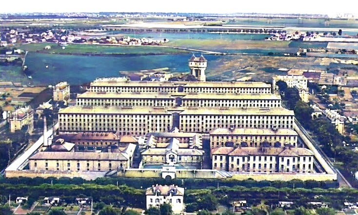 An imposing aerial shot of Fresnes prison, where Odette was held and interrogated, before being transported to the horrors of Ravensbrück.