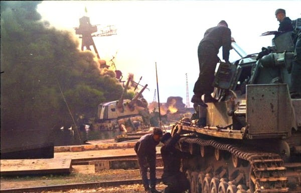 Here, “panzertruppen” of the II SS Panzer Corps can be seen in front of one of the 77 vessels scuttled by the Marine Nationale during “Case Anton” – the German invasion of Vichy France.